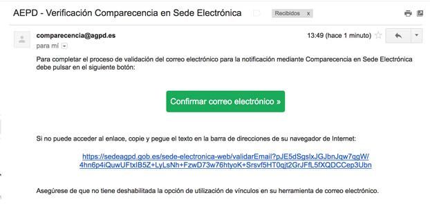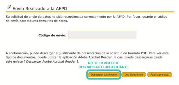 Una vez hayas accedido a una nueva notificación, lee el texto sobre la inscripción de ficheros y avanza hasta la parte de abajo de la página, en la que encontrarás la siguiente información: