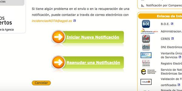 Si es tu primera vez en esta guía y te estás adentrando en el mundo de la inscripción de ficheros habrás de empezar desde cero e iniciar una notificación. Pulsa en «Iniciar Nueva Notificación«.